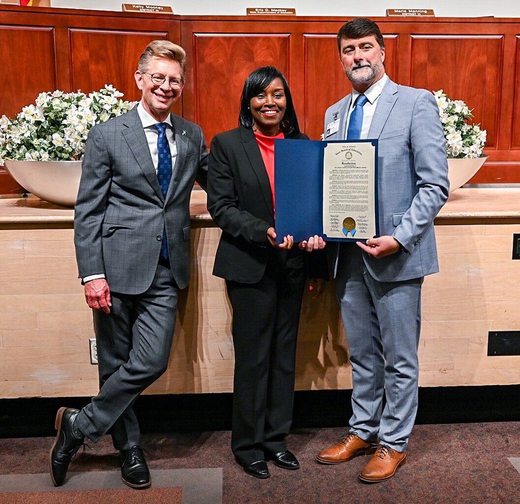 Pictured (left to right):Dr. Eric Mackey, State Superintendent, Alabama Department of Education; Judy Thomas, Assistant Superintendent, Houston County Schools; and Vince Wade, President, Houston Co...